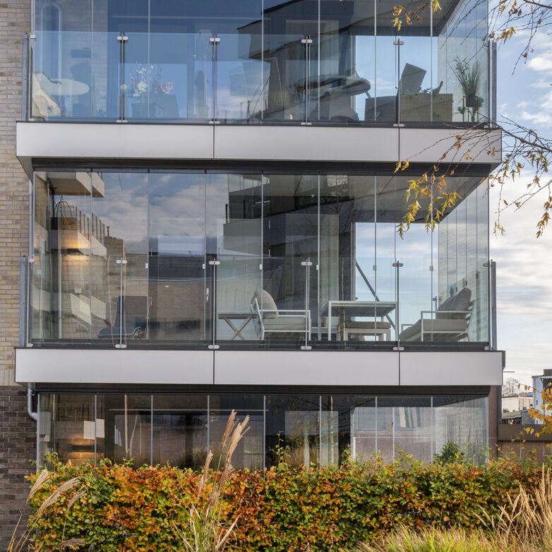 Our premium single-glazed folding glass wall system, designed to create the ultimate flexible outdoor space. The first panel operates as a regular swinging door, while the remaining panels slide and stack independently beside the first panel. Panels can be completely open, partially open, or completely closed – giving you full control of the airflow and temperature. While this is a newer concept in North America, it is considered the standard in balcony and patio design across Scandinavia, with millions of glass panels installed all throughout Europe.