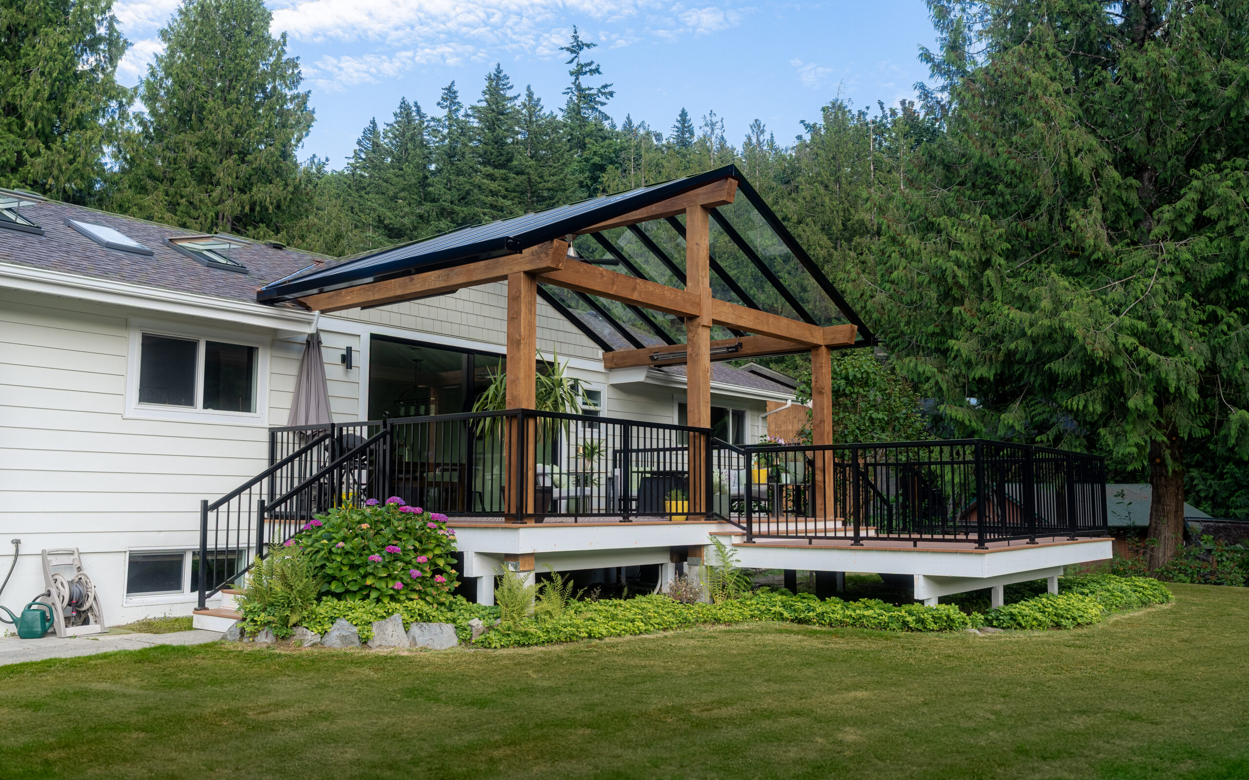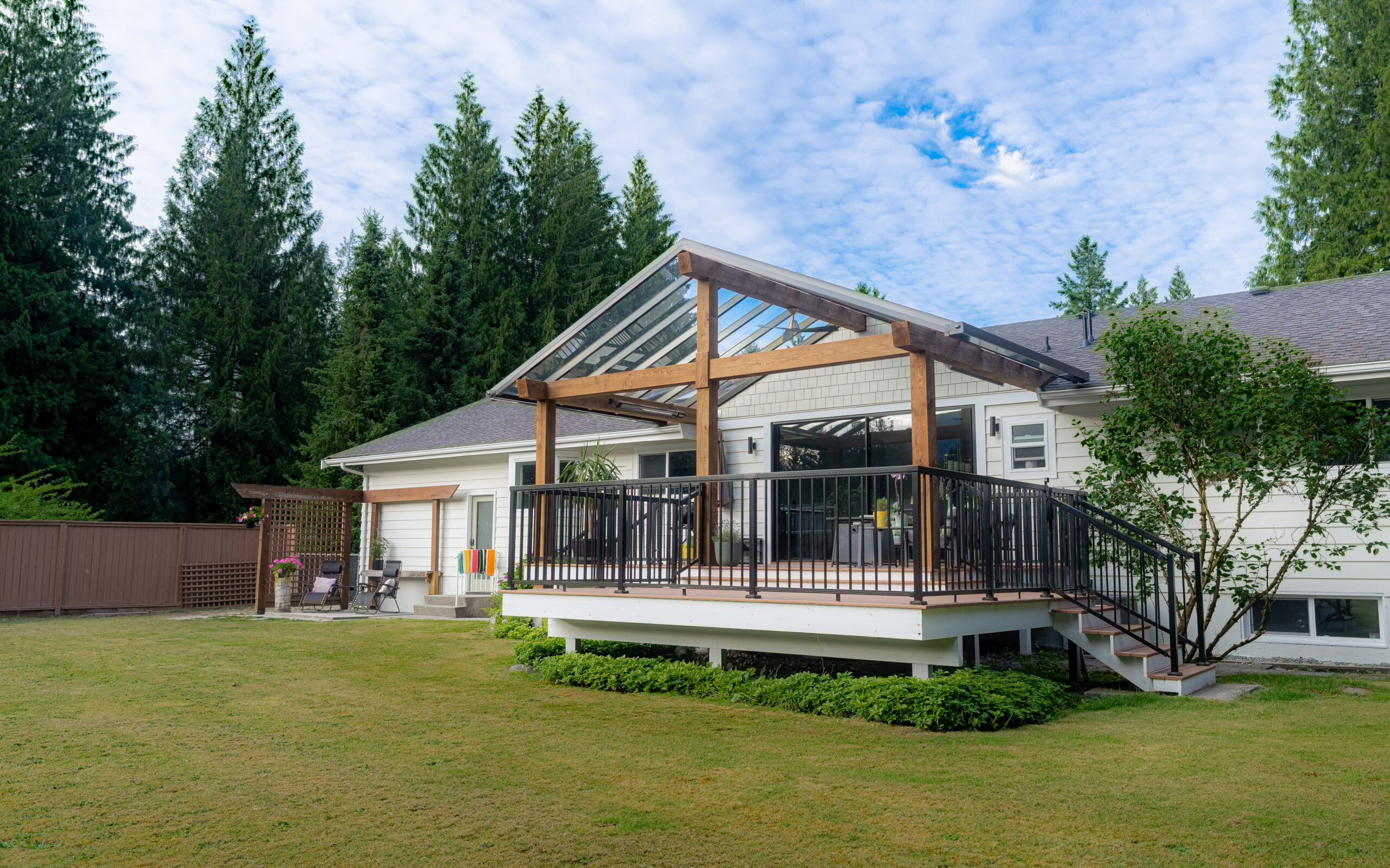 Our aluminum-framed patio roof system offers the perfect solution for both attached and freestanding patio structures. With a variety of roofing materials to choose from, we can handle heavy snow, maximize natural light, or provide heat-blocking solutions, ensuring year-round comfort. Fully engineered and tested for winter conditions, this robust system is a versatile, all-season outdoor roof that’s both functional and stylish.